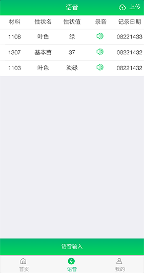 第2步:在信息錄入頁面點擊語音輸入,然后直接按照 “試驗田編號+植物性狀+指標”;