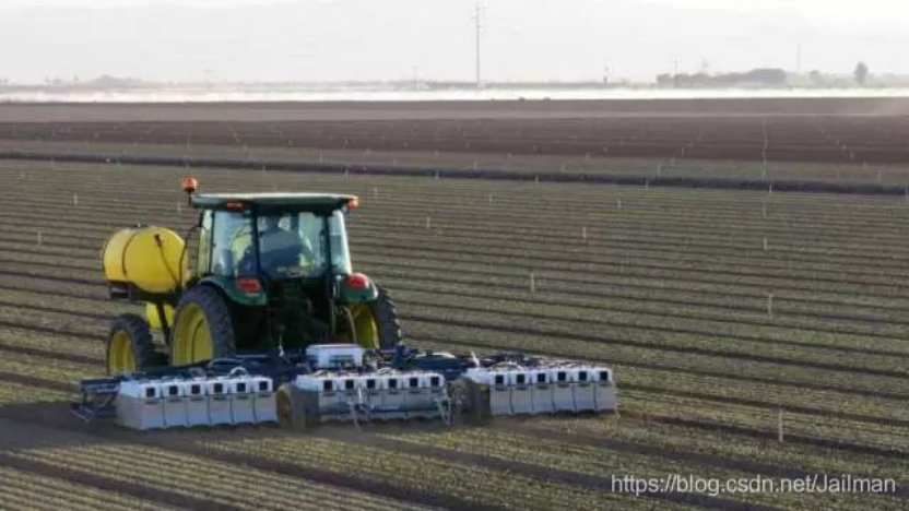 Blue River Technologies是一家位于美國加州的農業機器人公司。Blue River的農業智能機器人可以智能除草、灌溉、施肥和噴藥。智能機器人利用電腦圖像識別技術來獲取農作物的生長狀況,通過機器學習,分析和判斷出那些是雜草需要清除,哪里需要灌溉,哪里需要施肥,哪里需要打藥,并且能夠立即執行(圖示為萵苣種植機)。智能機器人因為能夠更精準的施肥和打藥,可以大大的減少農藥和化肥的使用,比傳統種植方式減少了90%的農藥化肥使用。