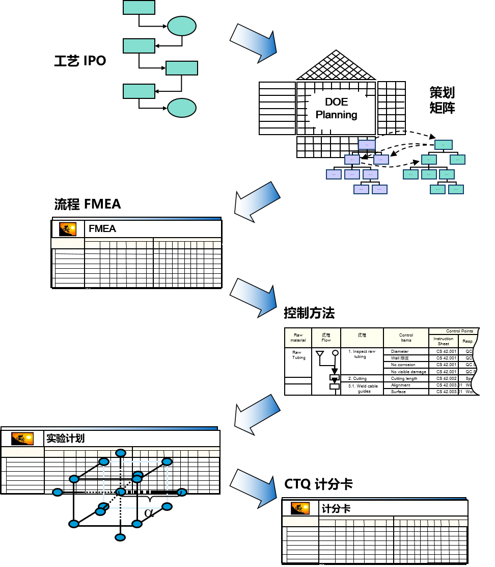 DOE的主要目的是幫助工程師規劃并執行一系列實驗,找到諸多輸入因素與CTQs的內在物理聯系, 然后通過控制這些輸入因素的波動范圍來實現CTQ的最小波動,從而達到六西格瑪的設計要求。