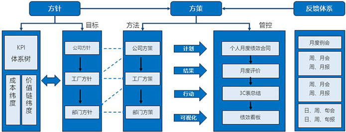 對公司的戰略規劃、經營方針進行目標化、指標化、數據化,將目標和指標分解出實現的關鍵策略,并建立關鍵策略與指標和目標對應關系,