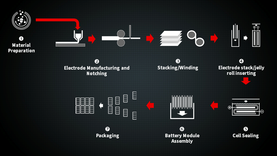 通常,鋰電池的生產(chǎn)包括材料準(zhǔn)備、電極制造和開槽、電芯制造、電池模塊組裝和電池封裝幾個(gè)步驟。通常,鋰電池的生產(chǎn)包括材料準(zhǔn)備、電極制造和開槽、電芯制造、電池模塊組裝和電池封裝幾個(gè)步驟。