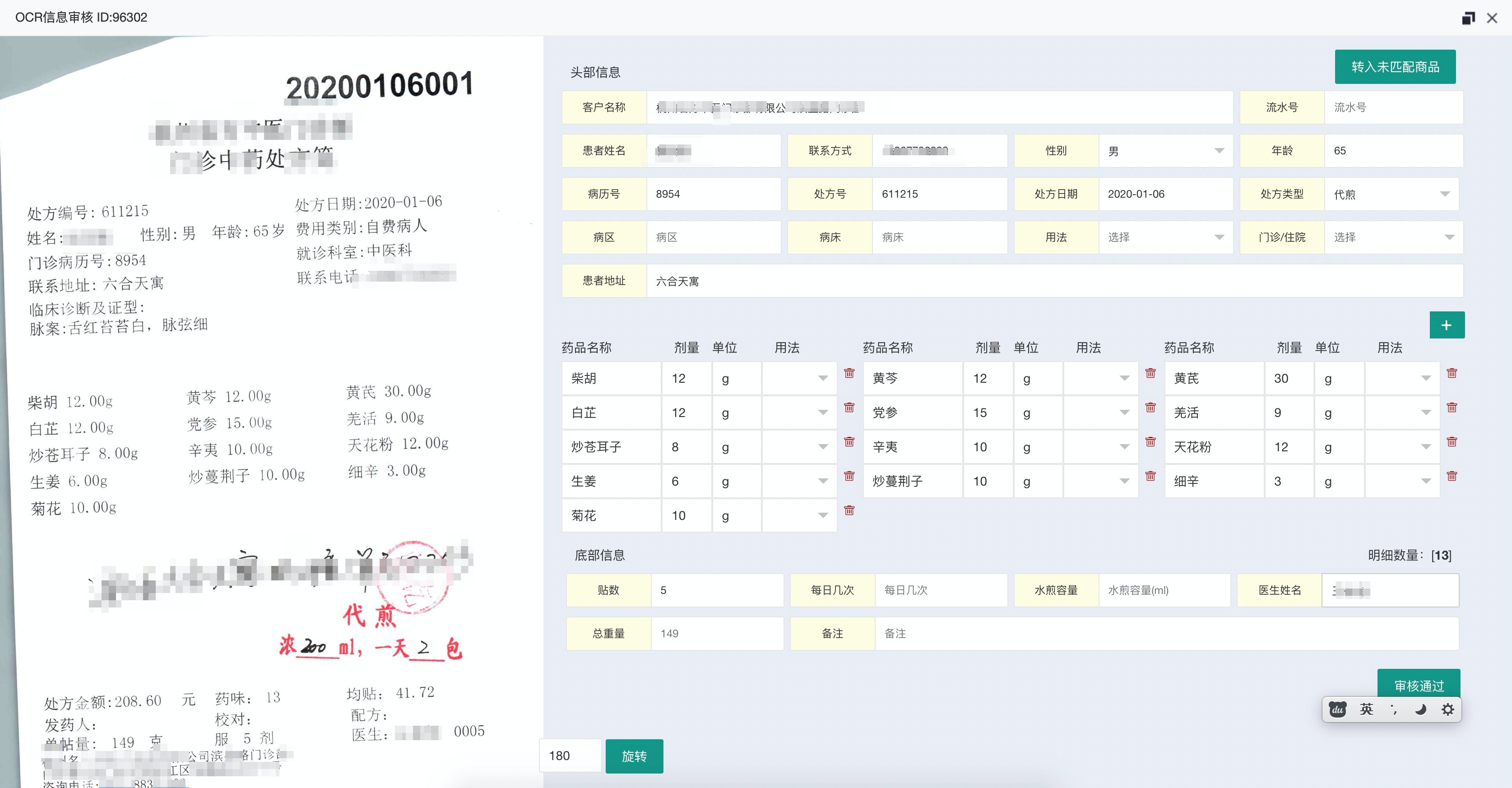 第三步、服務器系統將返回的處方文字信息轉換為標準的電子處方單后,先通過人工審核確認電子處方單信息無誤后,系統會將處方信息自動保存到處方數據庫中。