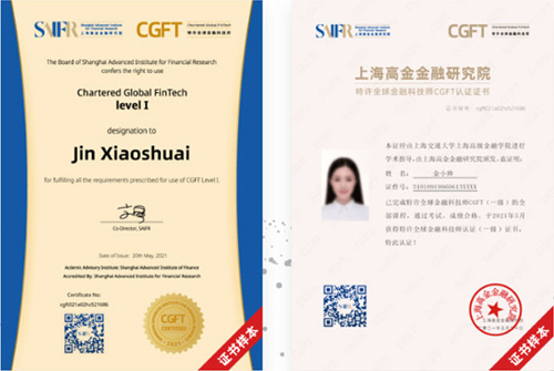 學(xué)員報名并完成特許全球金融科技師CGFT的課程學(xué)習(xí),參加全國統(tǒng)一考試且成績合格,可獲得由上海交通大學(xué)上海高級金融學(xué)院學(xué)術(shù)指導(dǎo)、上海高金金融研究院頒發(fā)的特許全球金融科技師CGFT對應(yīng)級別證書。
